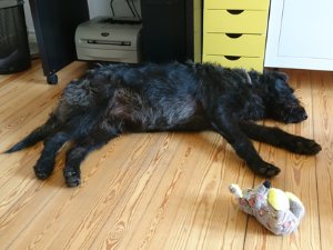 Zum Wohlfühlen brauche ich eine Aufgabe und ein größeres Bewegungsangebot von Euch, Pfötchen stille halten kann ich später, wenn ich älter bin. Jetzt möchte ich erst einmal meine Robinsonaden schreiben, fröhlich durch die Gegend springen im Stile eines jungen Rehs.