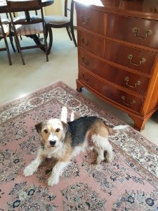 Er ist auch ein kleiner Schelm, was er nicht will, das will er nicht - eben ein Beagle -Terrier! Stur, verfressen, aber lieb-