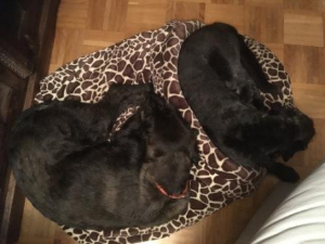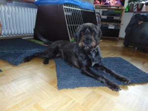 Sie lebt jetzt bei mir im Haus zusammen mit meinen beiden Hündinnen (1x Schnauzermix, 1x Kopov-Bracke) und die kommen prima miteinander klar.