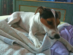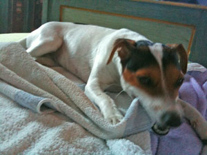 Wir waren auch bei der Tierärztin, die wie immer so begeistert von mir ist. Ich hätte mich so toll entwickelt, und das Fell ist auch so schön geworden. Nun ja, sie hat mich ja gesehen, da war ich gerade mal ein paar Tage bei meiner neuen Familie. Ich habe dann noch meinen Pieks (Jacky meint "Impfung", Anmerkung Monika) bekommen und war dabei ganz tapfer. Frau Dr. Kluge schwärmt immer nur, wenn sie mich behandelt. Sie meint, ich sei eine richtige Sportlerin.
