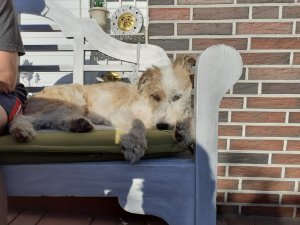 Ich wollte mich wieder einmal melden. Meine "Eltern" und ich, wir sind ein gutes Team. Was sie nicht so richtig verstehen ist, dass ich immer Hunger habe. Ich bekomme zwischendurch ein Möhrchen, wusste gar nicht das die Dinger so lecker sind. Mein Frauchen nennt mich dann den König der Bettler. Na ja, auf jeden Fall wollte ich nur mal sagen, dass ich mich hier sauwohl fühle. Ich hänge euch noch ein paar Bilder an, werde ja oft fotografiert, das muss wohl daran liegen das ich so ein Prachtkerl bin.