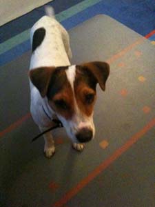 Ich hatte heute meine erste Schulstunde. Meine Lehrerin heißt Lola und ist total nett. Es gab immer Leckerlis als Belohnung.