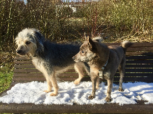 Mit anderen Hunden verstehe ich mich auch. Ich habe vorher nämlich mit einigen zusammen gewohnt.