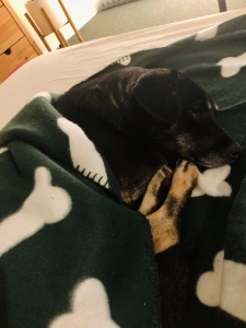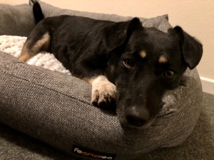 Müde aber glücklich ist Finja (so heißt sie nun und sie hört sogar schon ein wenig drauf) in ihrem neuen zu Hause angekommen :icon_heart: Nach einem ausgiebigen Spaziergang (sie liebt es im Schnee zu spielen) hat sie gegessen und getrunken und nun liegt sie neben mir auf ihrer Decke (sie hat schon gelernt, dass sie nur auf der Decke auf dem Sofa liegen darf) und schläft! :icon_blog-messias: Die Übergabe war auch ganz wundervoll! Finja hat direkt gemerkt dass sie keine Angst haben muss und hat sich nach fünf Minuten in meinen Arm gekuschelt. Seit dem weicht sie mir nicht mehr von der Seite und ist ganz aufmerksam, wenn ich den Raum verlasse. Auch ihr Platz im Körbchen im Schlafzimmer hat sie schon entdeckt und eingeweiht (siehe Foto). :icon_herzen01: