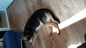 Es war schön zu sehen das Matze auch wenn er an der Schleppleine ( 15m) war immer und immer wieder zu uns kam gekuschelt hat und sich neben uns auf den Rücken gelegt hat. Matze hat nie wirklich gezogen an der Leine und war meistens hinter uns oder an der Seite und wenn er mal vorweg war bekamm er immer mit das wir auch mal stehen bleiben und ist immer wieder zurück gekommen