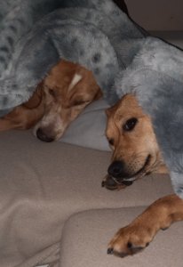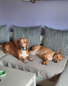 ]Robby und Gina wollten sich auch mal melden.Nachdem Gina die ersten 3 Tage nichts mit Robby zu tun haben wollte sind sie jetzt ein Dreamteam,gut manchmal nennen wir sie auch die ungarische Mafia.Robby hat Gina sämtliche Gartenarbeiten wie Löcher buddeln beigebracht und Gina hat ihm gezeigt wie man Kissen und Wolldecken zerfetzt.Da waren beide sehr lernfähig.Das wieder abgewöhnen hat länger gedauert.Anfangs hat Gina auch immer blitzschnell das Wohnzimmer nach ihren Wünschen umdekoriert.Langeweile gab es hier nicht mehr.Zum Glück hat sie ihre anfängliche Angst vor so ziemlich allem was draussen so war verloren,mittlerweile wird sie schon recht selbstbewusst.Das einzige was sie immer noch nicht gerne macht ist Gassi gehen.Wenn wir zurück kommen springt und rennt sie immer wie eine Wilde durch den Garten,sie ist der Meinung das es es zu Hause am schönsten ist.Vielleicht ändert sie sich in der Sache ja auch noch.Auf jeden Fall sind wir froh das wir unsere beiden süssen,verrückten Mäuse haben.