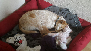 Ja was soll ich sagen...sie ist sehr aufgeweckt und läuft meiner Mutter und mir ständig hinterher, klettert an uns hoch und leckt uns ab :icon_lecker: Spaziergänge gehen mittlerweile von Tag zu Tag auch besser. Gestern bin ich mit ihr und spazieren gewesen und da haben wir die Ronja (9 jährige Mischlingshündin) und ihre Spaziergängerin getroffen und sind zusammen gegangen :icon_hundeleine01: . Das klappt echt gut mit den beiden. Im Wald dann, bekam sie kurz ihre 5 Minuten und wollte los rennen :icon_hundeleine01: . Aber das geht ja nicht an der Leine :D Später im Park, hat sie noch 3 andere Hunde kennengelernt. Das ging auch gut. Gestern und vorgestern haben wir auch schon Nachtspaziergänge gemacht, da ist sie echt gut drauf :D macht ihr anscheinend sehr viel spaß. Mittlerweile leckt sie uns nicht nur, sie fängt uns auch sogar aus spiel und spaß an zu knabbern :icon_irre: Ein kleiner Frechdachs wird sie auch schon :D Klaut mir meine Pantoffeln, Stofftiere die ihr nicht gehören, ihre eigene Bürste und manch andere Dinge :D Naja, bald kapiert sie auch, dass sie sich nicht alles erlauben kann.